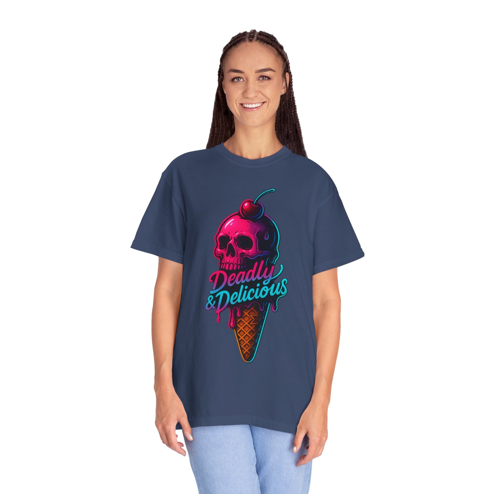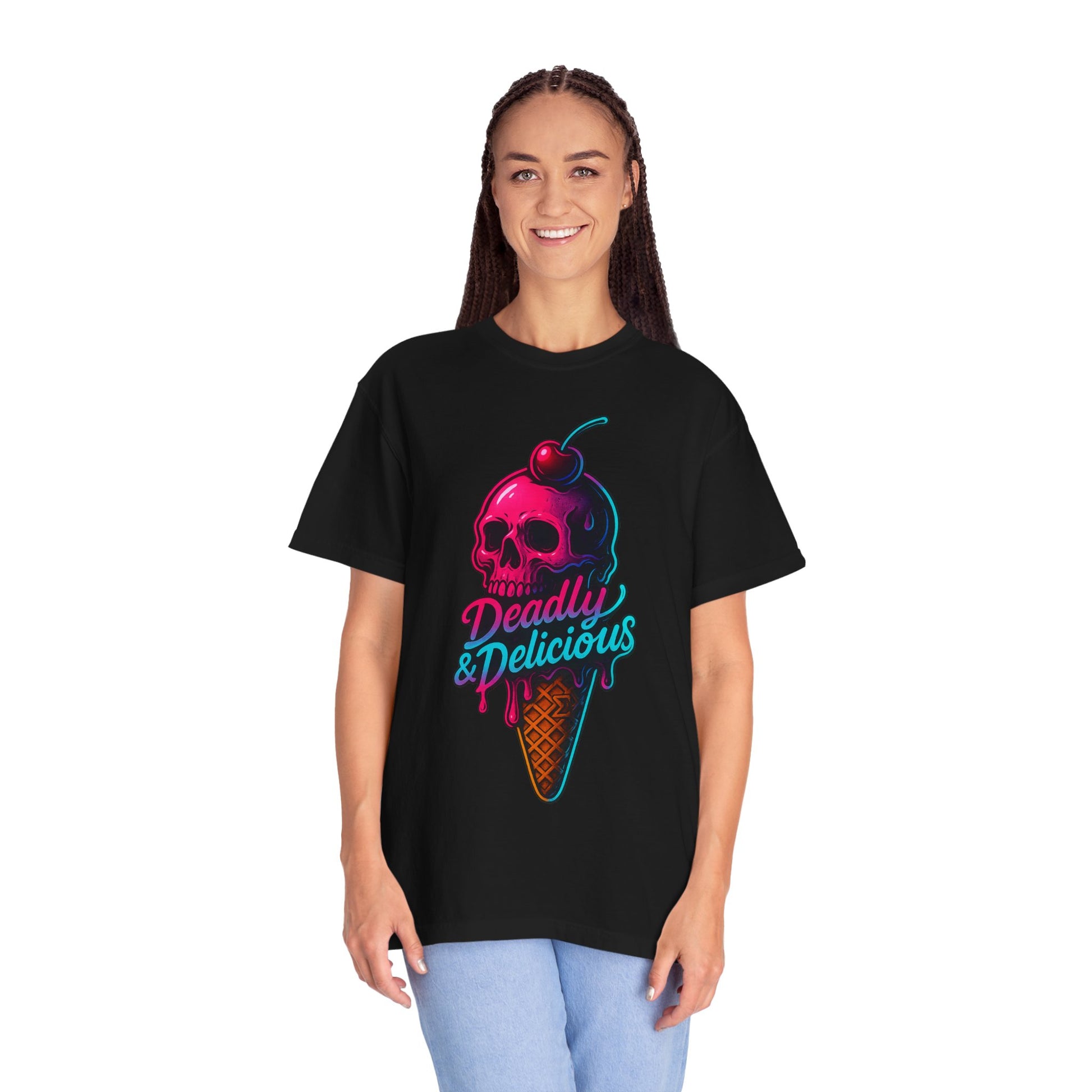 Serve chaos and charm in equal scoops with the Deadly & Delicious Neon Skull Tee by Sigma Selections.