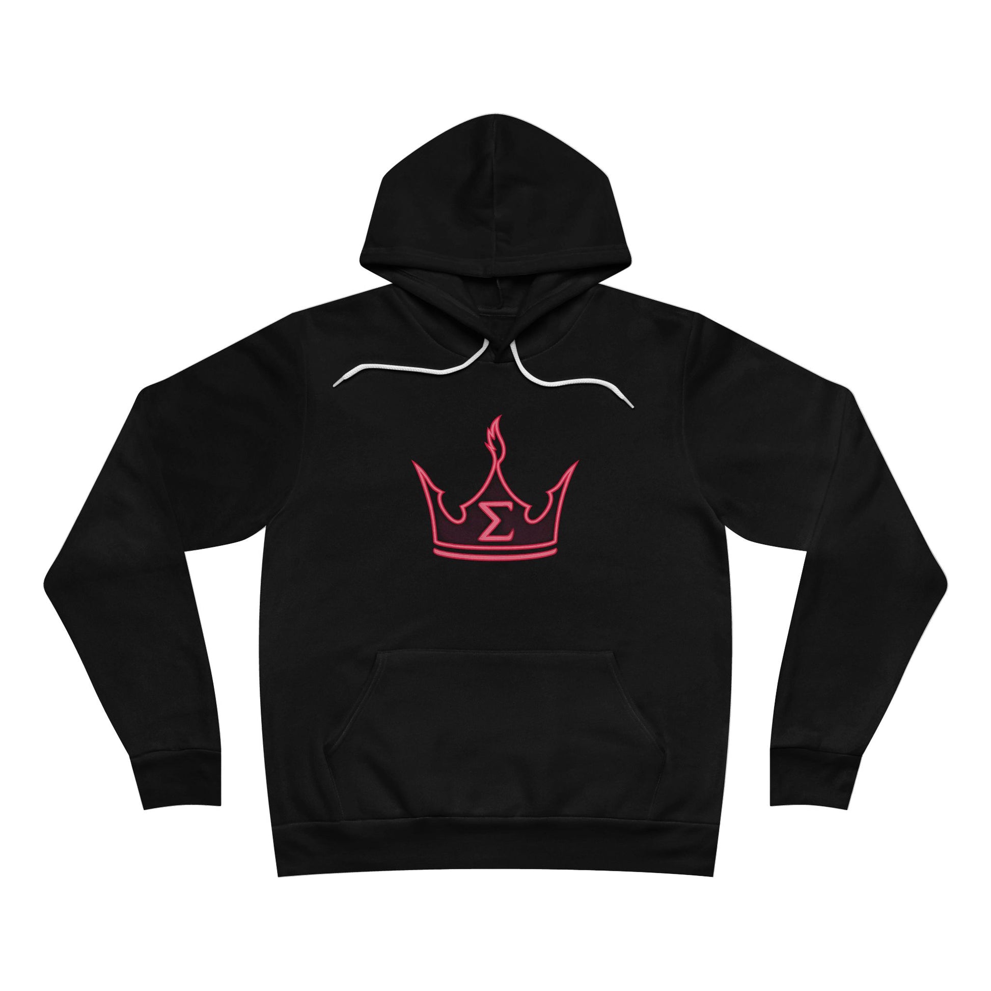 The Pirate Chaos // Σ Edition Hoodie wasn’t designed to fit in — it was designed to set the tone the moment you walk in. The back features the iconic Neon Pirate Queen, glowing blade raised, attitude loud enough to speak without saying a word. On the front, the Σ Crown emblem burns in neon magenta, a clean symbol of power that hits just right.