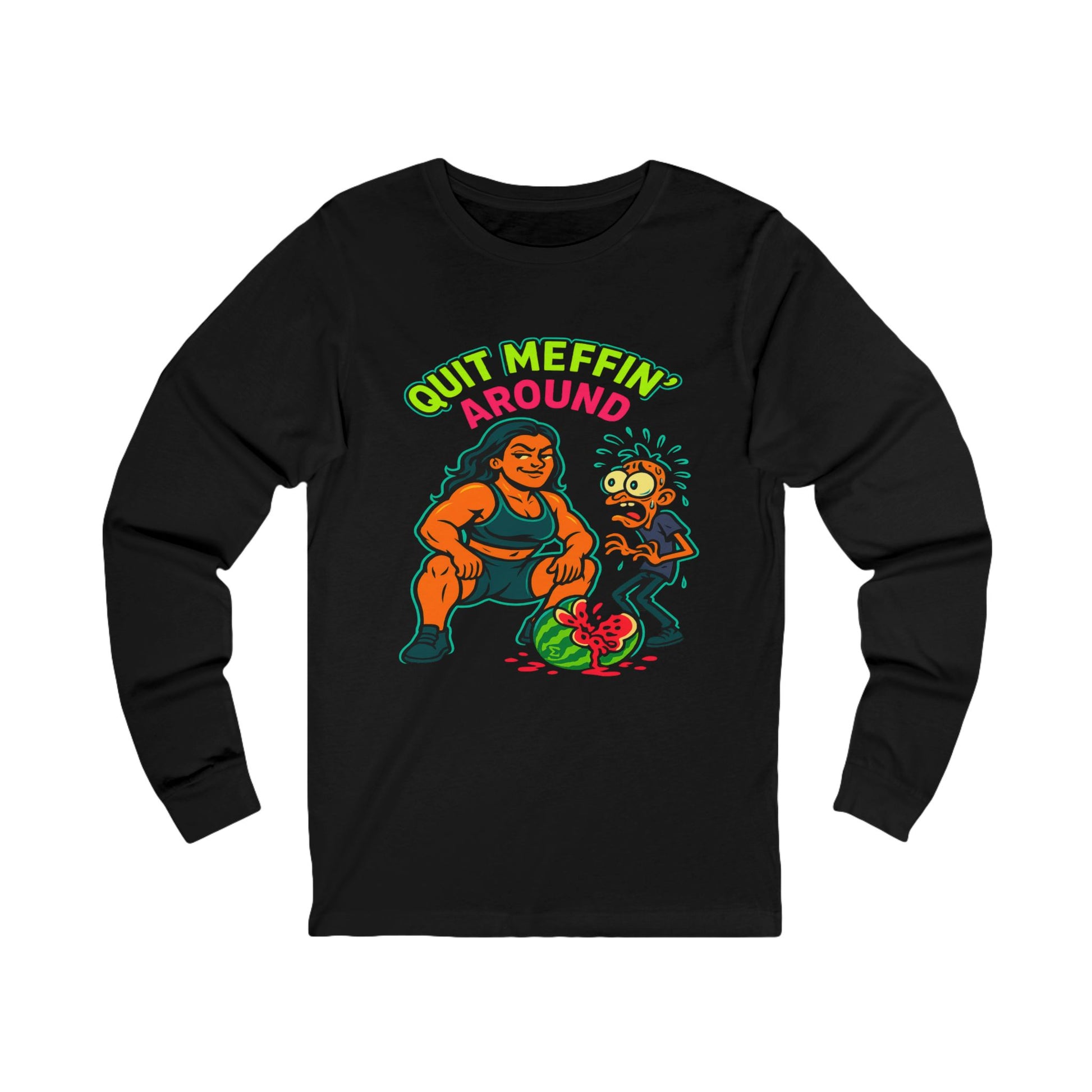 This long sleeve tee brings the full Quit Meffin’ Around attitude to life, pairing bold character art with neon punchlines and a clean Sigma finish. Whether you’re flexing, chilling, or reminding someone to get their act together, this piece delivers instant personality.
