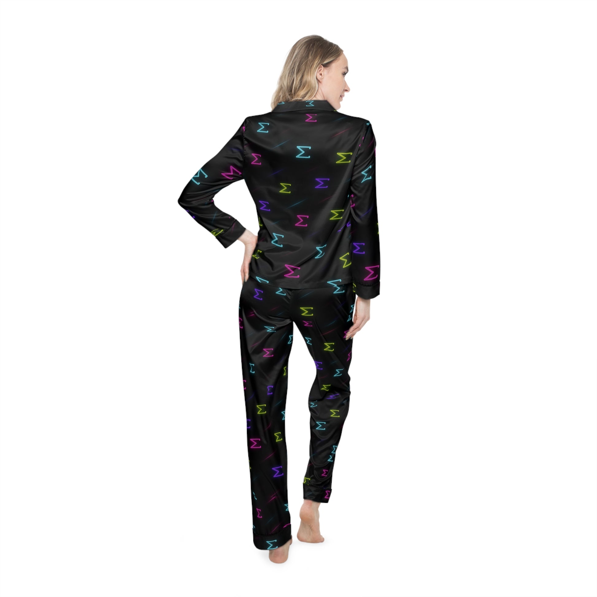 Slip into the kind of comfort that feels like a secret flex. The Sigma Nocturne Satin Set merges ultra-smooth satin with Sigma’s signature neon Σ pattern, creating a lounge look that hits somewhere between luxury sleepwear and late-night street couture.