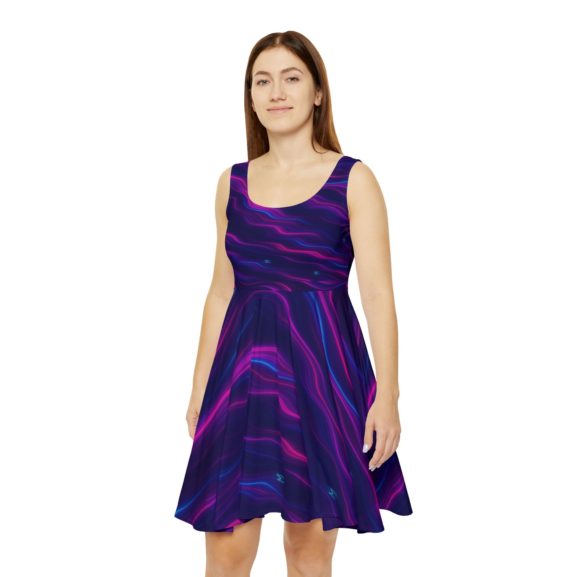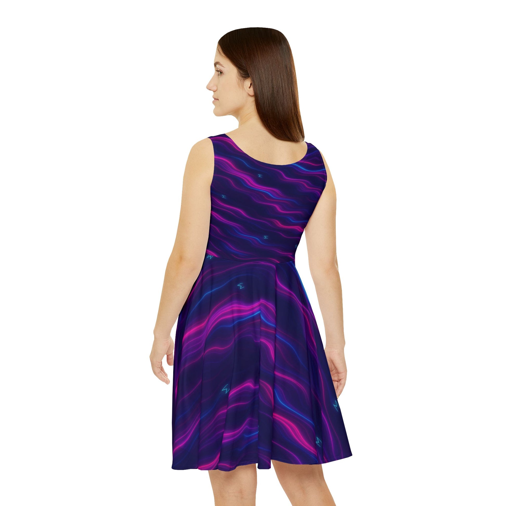 The Neon Wave Σ Skater Dress brings a hypnotic flow of electric blues and cosmic pinks that wrap the body like living light. Smooth, breathable fabric moves with you, catching eyes with every shift. A statement piece for nights out, festivals, date nights, or just flexing on a Tuesday.