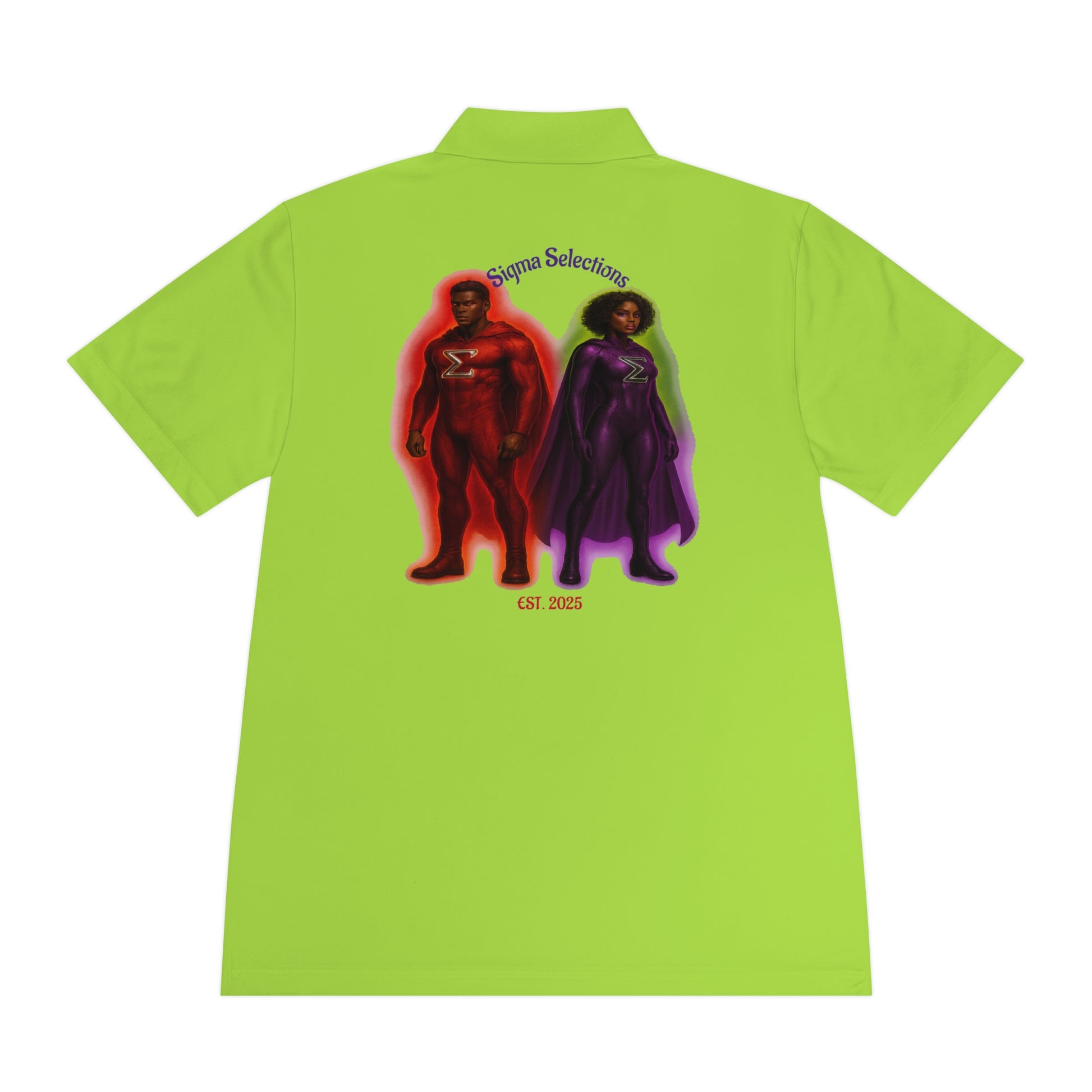 Where divine energy meets designer precision. The Voltage Saints polo merges raw confidence with effortless luxury — cut for creators, leaders, and anyone who commands a room without raising their voice. Featuring Crimson Titan and Violet Vortex, two icons of Sigma Selections’ hero line, this piece radiates intensity and poise. The artwork is printed in high-definition on premium moisture-wicking fabric that glows against the Lime Shock base — a fusion of strength, grace, and undeniable presence.